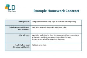 Points systems can be used to enable students to accrue points at school that can be traded for defined rewards at home. Menus of rewards tend to work best (for longevity). Systems that offer both small and larger (more expensive or long-term) rewards in exchange for points work well. Both material (e.g. small toys, snacks) and activity (e.g. chance to play with friends) age-appropriate reinforcers can be offered. If, after troubleshooting, all parties come to a mutual agreement on how homework should proceed, it may then be helpful to factor in penalties (usually a loss of privilege) for non-compliance. Any incentive schemes ought to be reviewed regularly. If the child seems to be earning more penalties than rewards, or has outgrown the incentives on offer, the plan has to be revised so that they are properly motivated and set for success.