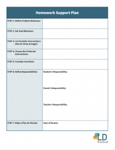 When formulating a support plan in cooperation with the family, this Homework Support Plan Template can help guide the discussion.