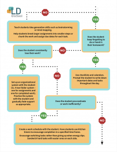 Implementing the ‘LAST’ formula may be enough for some children, but it is also quite common for students with LDs to need more specific support. This Homework Trouble-shooter offers various tips and suggested interventions to some of the more common homework issues.