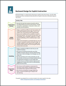 Follow the guidelines below and use LD@school’s backward design template to prepare for your explicit instruction lessons.