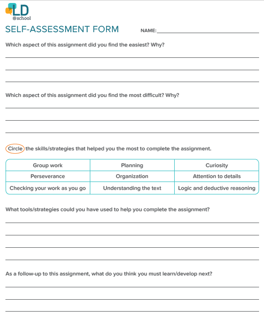 LD@school has developed a series of forms that educators may download and use with their students to promote self-assessment!
